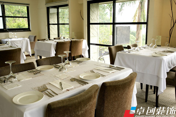 餐廳裝修中要注重地板的裝修設計,地面要選擇易清潔的材料,盡量不要使用地毯。地磚和木地板是很適合的。不潔凈的地板會直接影響餐廳形象。地板的顏色也是有講究的,一定要符合整個餐廳的設計風格,在挑選地板時要注意防滑。